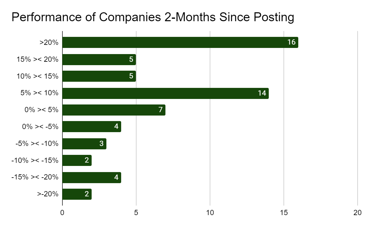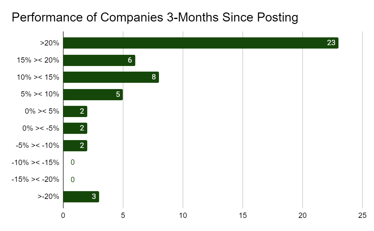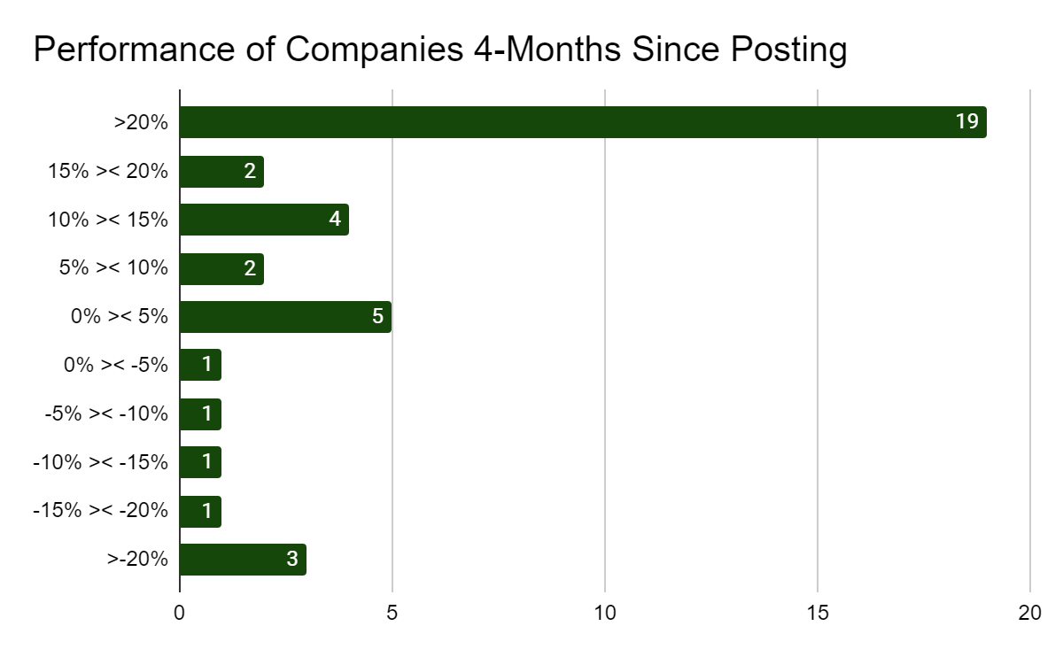 2 months, 3 months, and 4 months out from the initial share date. As you can imagine, not all have had the time to fully recognize their potential but that doesn’t mean we don’t have some stellar winners.